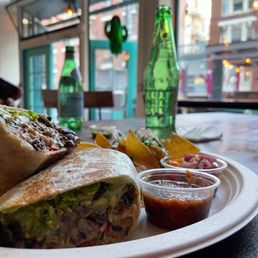 Prices are okay--a bit expensive for what it is. The burritos are a little strange? I've never met a burrito that I don't like, but I was not in love with this one. The pineapple and coconut and lettuce (?) clashed a little, but they have lots of vegan options! The coconut horchata is definitely very coconut-y and refreshing. Overall, not a bad establishment. Good amount of seats. Impossible to find parking on any nearby street.